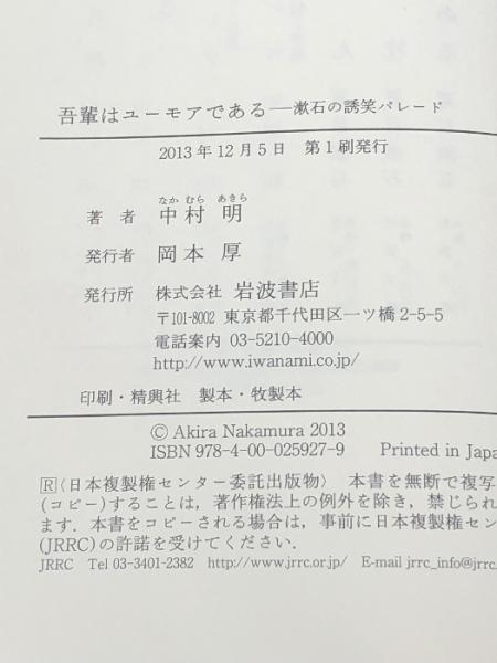 吾輩はユーモアである――漱石の誘笑パレード 岩波書店 中村 明