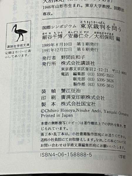 東京裁判を問う: 国際シンポジウム (講談社学術文庫 888) 講談社 細谷 千博