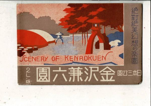 (レトロ絵葉書)絶対絶美幻想の楽園 日本三公園 金沢兼六園 絵葉書8枚と封筒 封筒に「昭和十五年」の書き込み 絵葉書通信面に「金澤市 徳田錦光堂 15.9.22」スタンプ