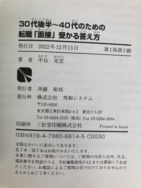 30代後半~40代のための 転職「面接」受かる答え方 秀和システム 中谷充宏