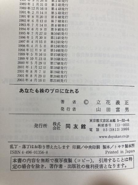 あなたも株のプロになれる: 成功した男の驚くべき売買記録 同友館 立花 義正