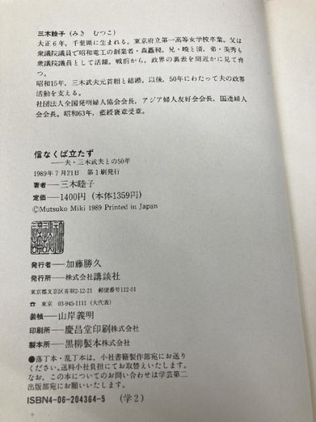 信なくば立たず: 夫・三木武夫との五十年 講談社 三木 睦子
