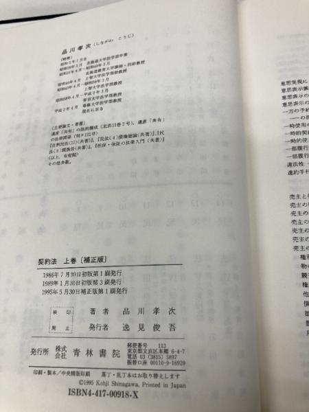 契約法 上巻 補正版 青林書院 品川 孝次
