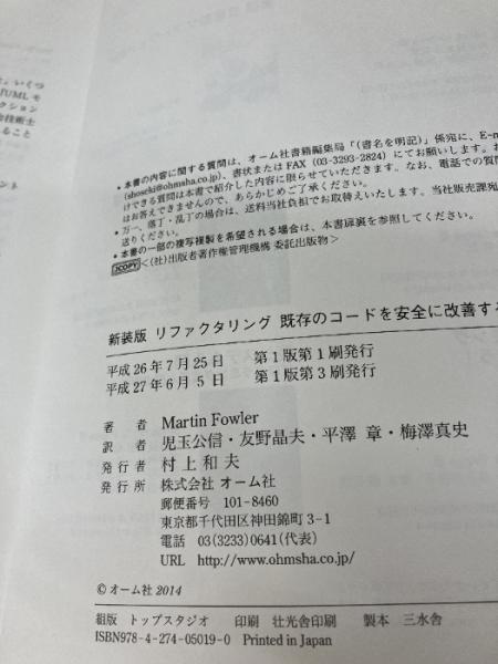 【イタミ有り】新装版 リファクタリング―既存のコードを安全に改善する― (OBJECT TECHNOLOGY SERIES) オーム社