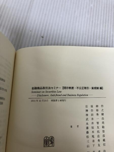 金融商品取引法セミナー -- 開示制度・不公正取引・業規制編