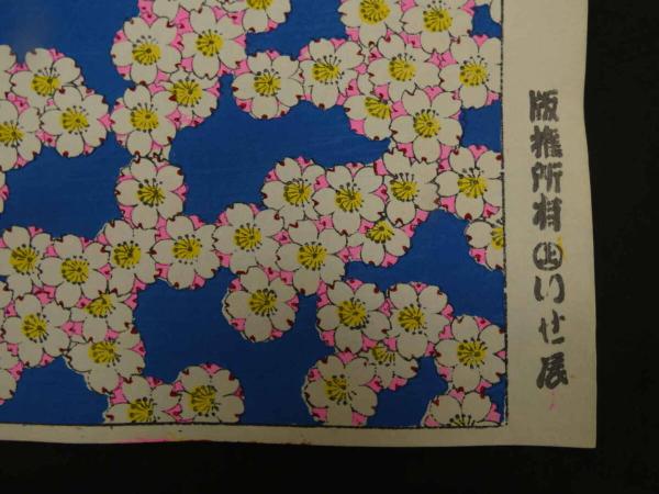 2 6 江戸千代紙 29 桜 青 いせ辰版 約37.5×26㎝ 木版画 図案