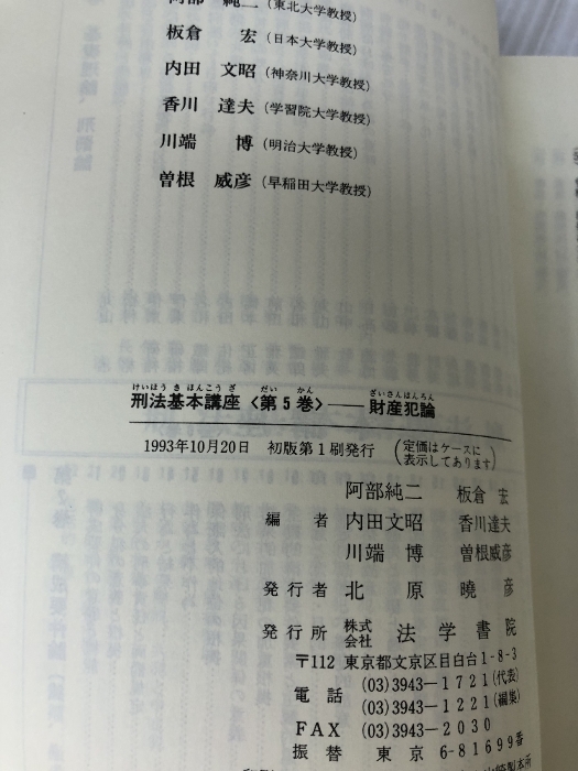 刑法基本講座 (第5巻) 法学書院 阿部 純二