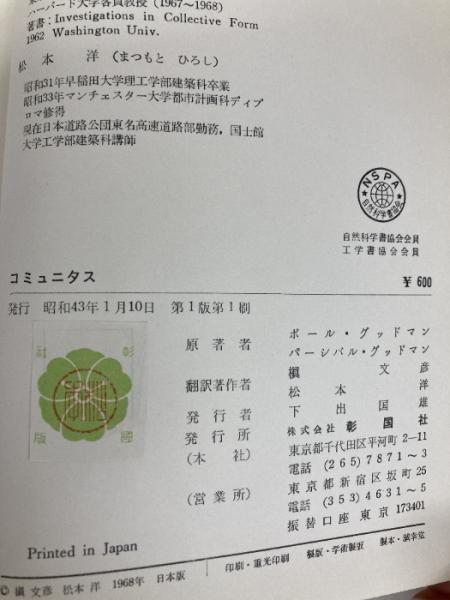 コミュニタス―理想社会への思索と方法 (1968年) ポール・グッドマン