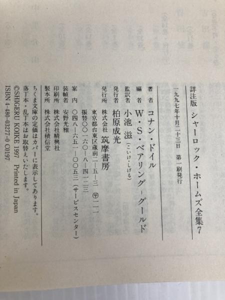 シャーロック・ホームズ全集 7 詳注版 (ちくま文庫 と 12-7) 筑摩書房 アーサー・コナン ドイル