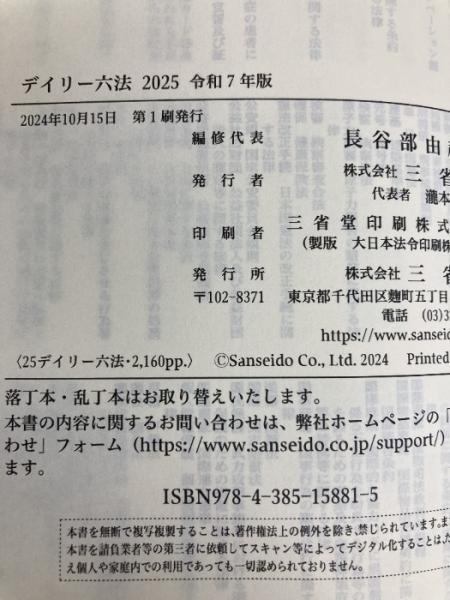 デイリー六法2025 令和7年版 三省堂 長谷部由起子(編集代表)