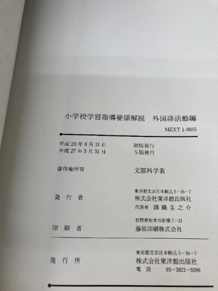 小学校学習指導要領解説 外国語活動編 東洋館出版社 文部科学省