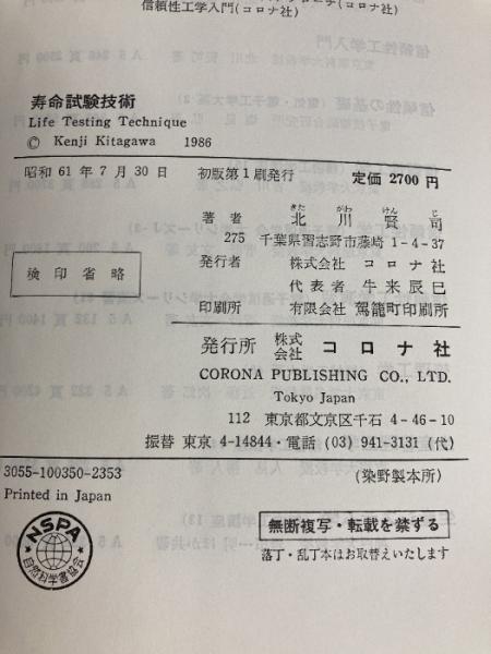 寿命試験技術 コロナ社 北川 賢司
