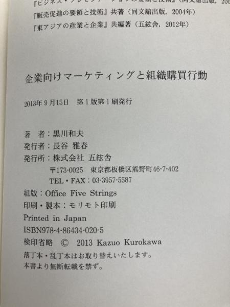 企業向けマ-ケティングと組織購買行動 五絃舎 黒川和夫(経営コンサルタント)