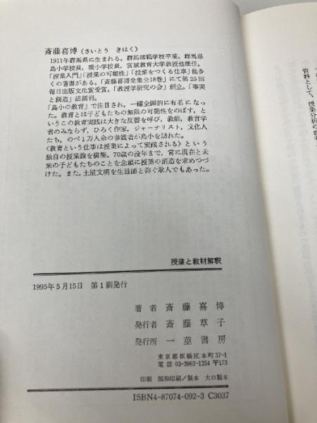 授業と教材解釈 [あなたの授業が生きる] 一莖書房 斎藤 喜博