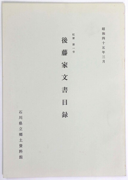 紀要第1号 後藤家文書目録