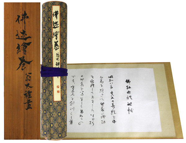 • 解説 備考: : やや傷み、キズ、スレ、汚れあり。まずまずの状態。 サイズ: 420mm    巻子本。共箱。350センチ×7メートル。