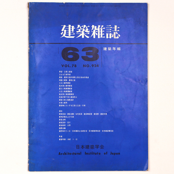 建築雑誌 建築年報’63  Vol.78 No.924