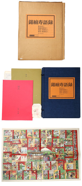 • 解説 備考: : 多少の傷みや汚れあり。あまり状態がよくない。 少ヤケ、シミ、ヨレあり。 サイズ: 405mm    限定家蔵版復刻版画双六(奥付表記) 限定1500部/553番 揃18枚 大正初期さいころ入