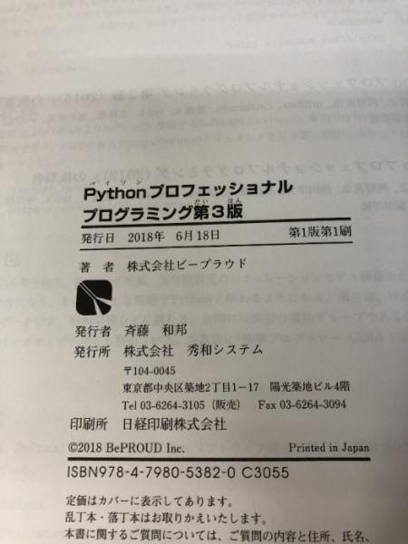 Pythonプロフェッショナルプログラミング 第3版 秀和システム 株式会社ビープラウド