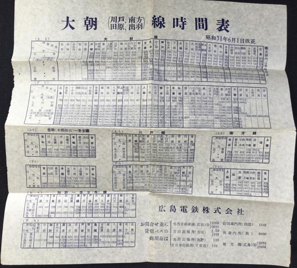 広島電鉄発行『大朝(川戸、南方、田原、出羽)時間表』