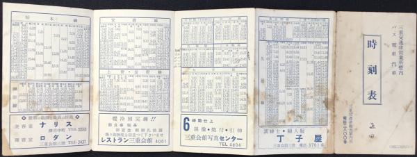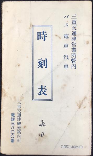 三重交通津観光案内所発行『三重交通津営業所管内バス電車汽車時刻表』