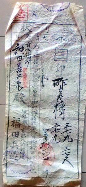 送り状 食料 酢大樽 和紙木版摺物 伊勢国三重県八郷村 美濃国高須町岐阜県海津郡 明治時代〇和本古書古文書