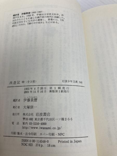 西遊記 中 (岩波少年文庫 548) 岩波書店 呉 承恩