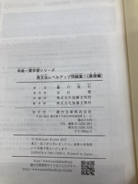 英文法レベルアップ問題集 1 基礎編 (中高一貫学習シリーズ) 駿台文庫 藤戸 英行