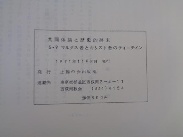 止揚 シリーズ(no.2) 共同体論と歴史的終末 5・9 マルクス者とキリスト者のティテイン