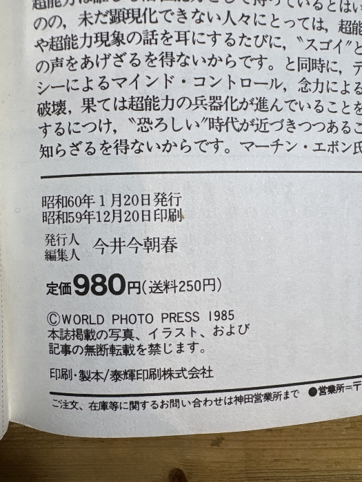 トワイライトゾーン別冊 超能力の世界/超能力現象と超能力者のすべてがわかる本 KKワールドフォトプレス 井村宏次、佐藤有文、志賀一雅、猪俣修二、他