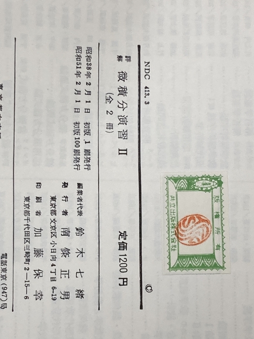 詳解微積分演習 II (大学課程数学演習シリーズ 3) 共立出版 福田 安蔵