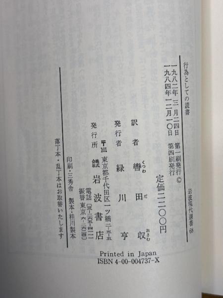 行為としての読書  ー美的作用の理論ー  (岩波現代選書68) W. イーザー