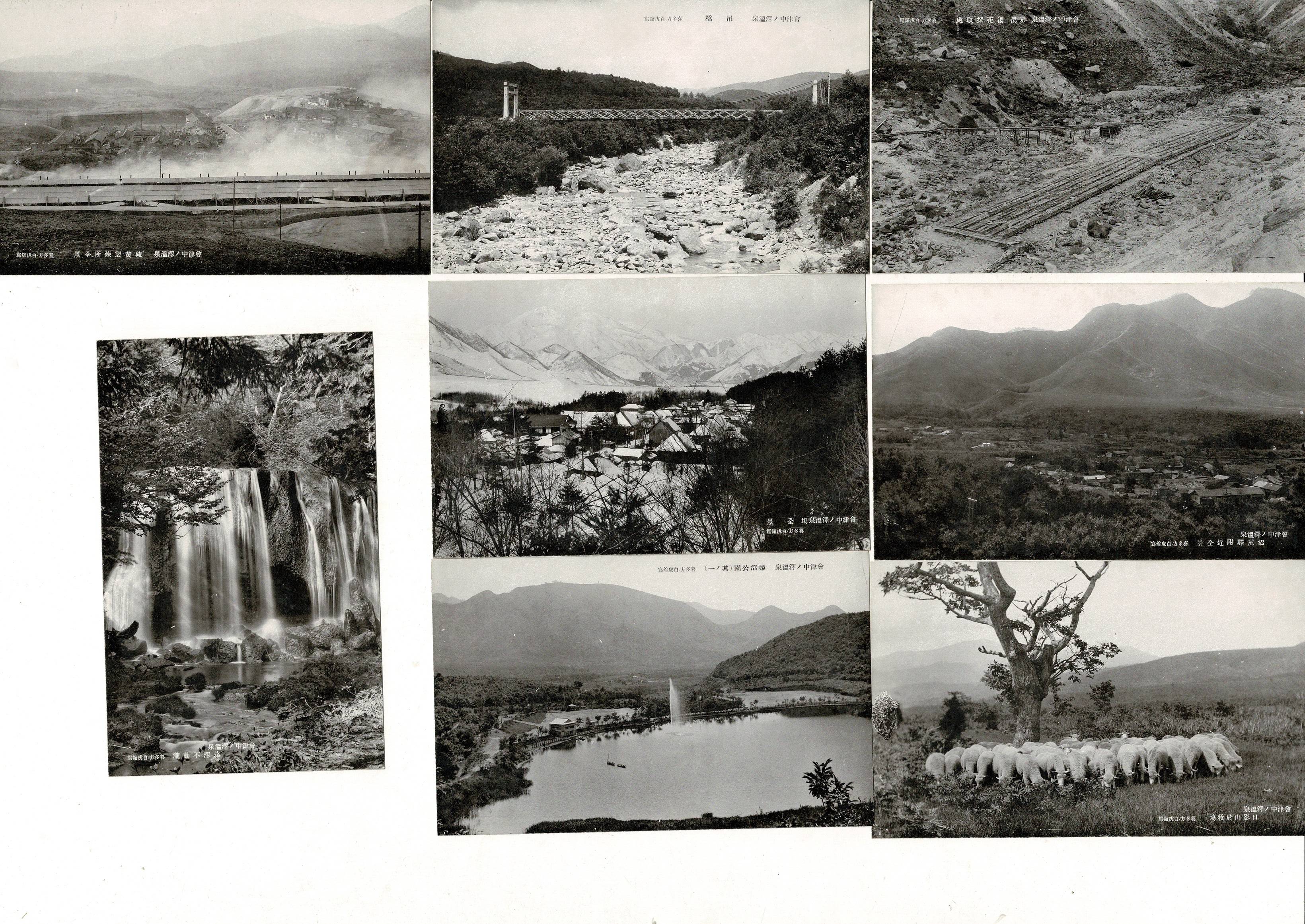 (レトロ絵葉書)会津中の沢温泉 名勝絵はがき 絵葉書8枚タトウ付き