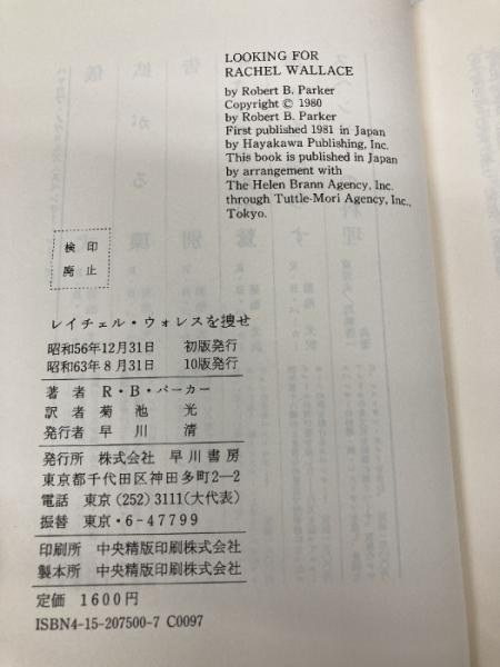 レイチェル・ウォレスを捜せ (ハヤカワ・ノヴェルズ) 早川書房 ロバート B.パーカー