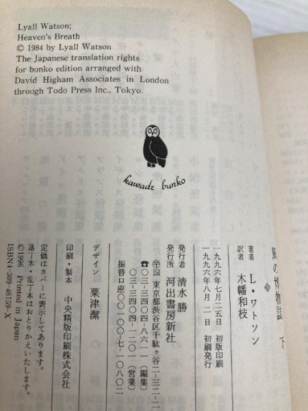 風の博物誌 下 (河出文庫 ワ 2-2) 河出書房新社 ライアル ワトソン