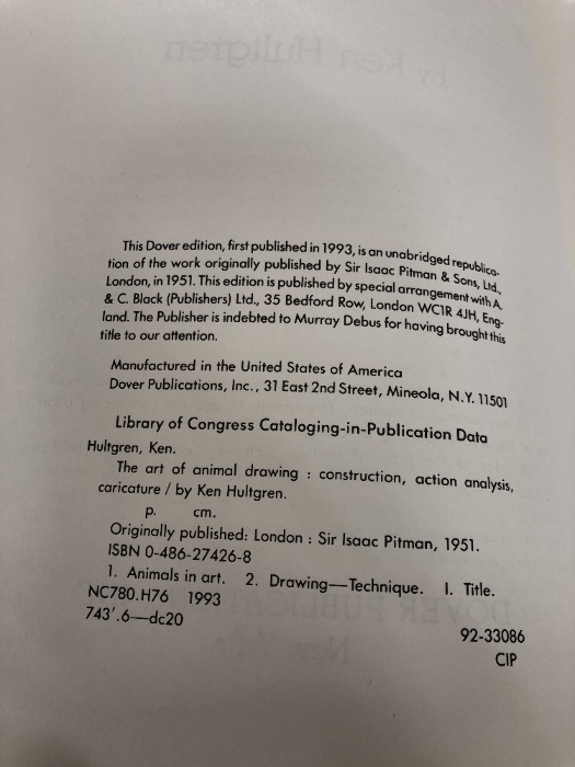The Art of Animal Drawing: Construction, Action Analysis, Caricature (Dover Art Instruction) Dover Publications Hultgren, Ken
