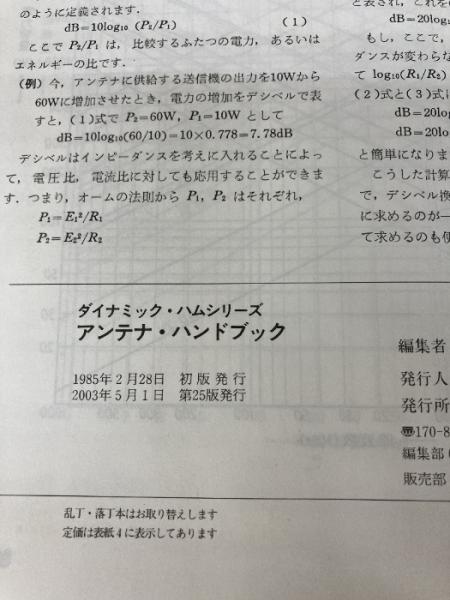 【※イタミ有り】アンテナ・ハンドブック (ダイナミック・ハムシリーズ 5) CQ出版 角居 洋司