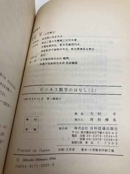 ビジネス数学のはなし 上巻 日科技連出版社 大村 平
