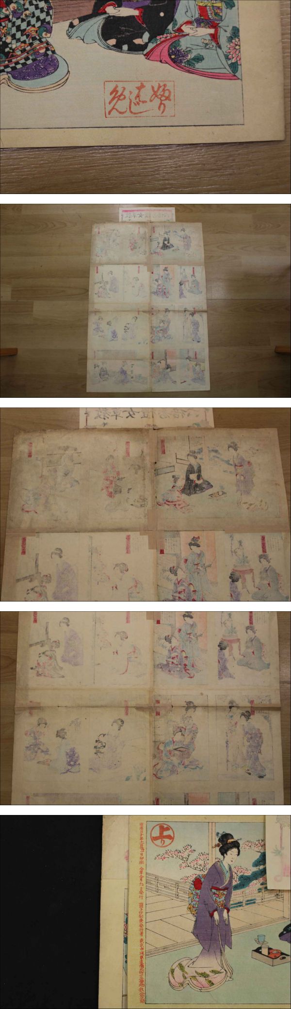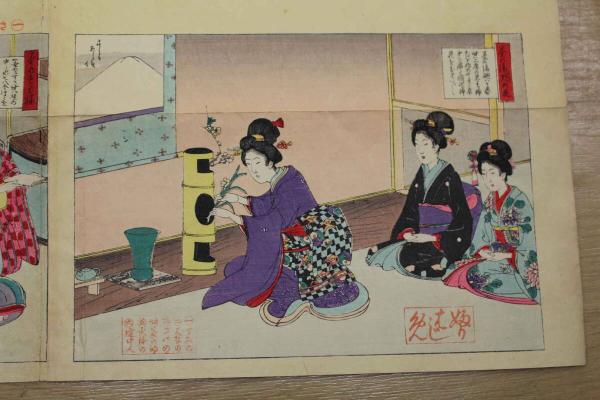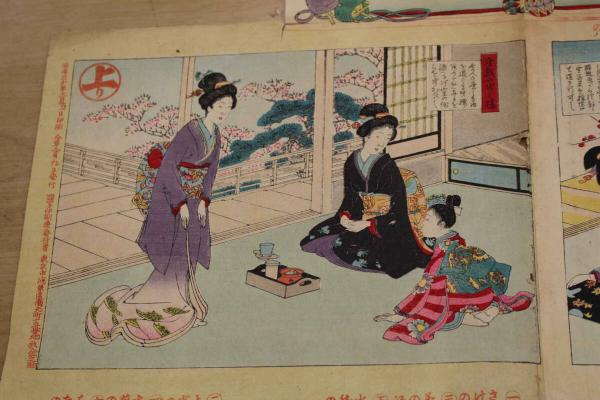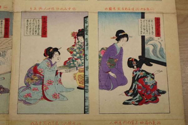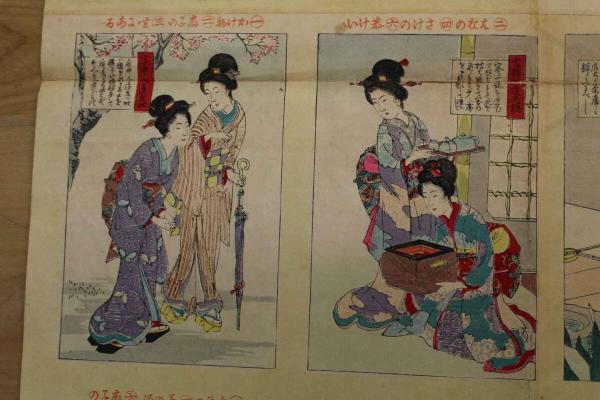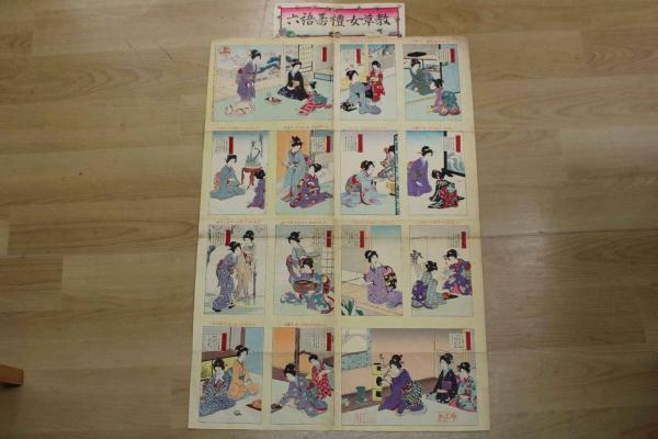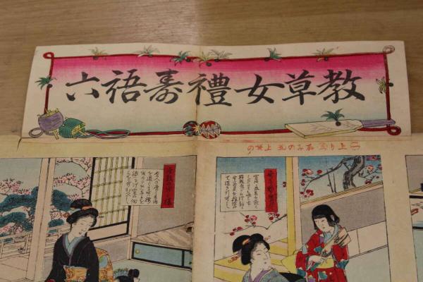 5 5 教草女礼寿語六 牧金之助 木版彩色刷 約72×49㎝(貼出部分除く)