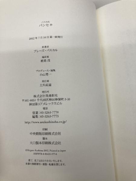 パスカル パンセ抄 飛鳥新社 ブレーズ・パスカル