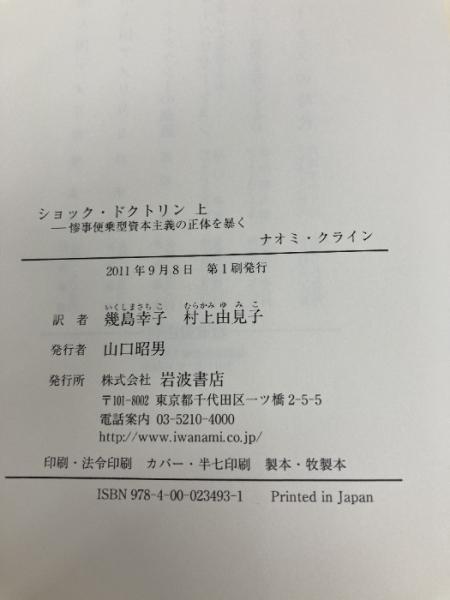 ショック・ドクトリン〈上〉――惨事便乗型資本主義の正体を暴く 岩波書店 ナオミ・クライン