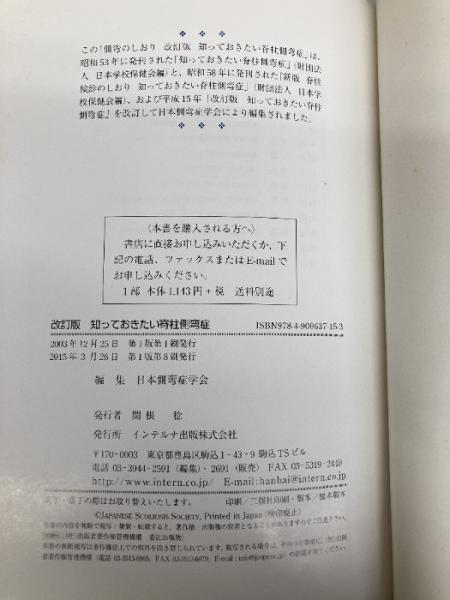 改訂版 知っておきたい脊柱側弯症 インテルナ出版 日本側湾症学会