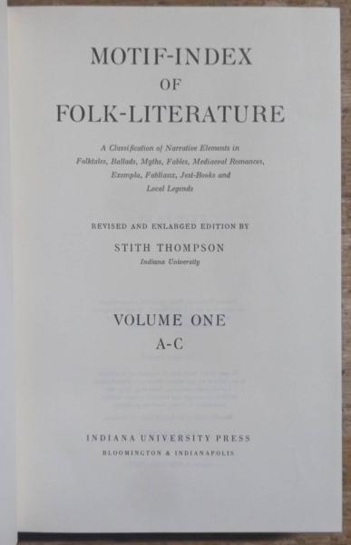MOTIF-INDEX OF FOLK-LITERATURE: A Classification of Narrative Elements in Folktales, Ballads, Myths, Fables, Mediaeval Romances, Exempla, Fabliaux, Jest-Books and Local Legends. Complete 6 volume set