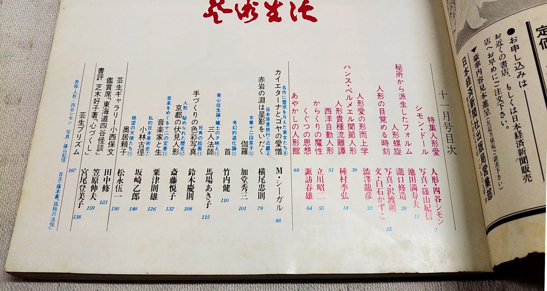 芸術生活 No.291 1973年11月号 ●特集:人形愛