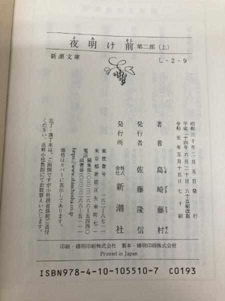 夜明け前 (第2部 上) (新潮文庫) 新潮社 藤村, 島崎