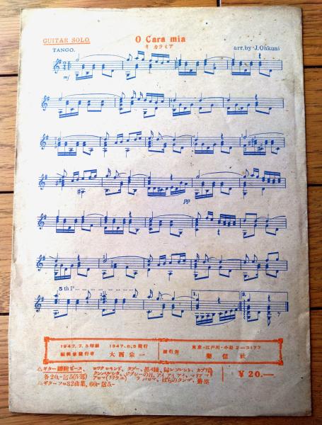 楽譜【傑作民謡特撰No.7 オー、カラミア(イタリア民謡)/B5サイズ・6ページ一枚物】楽信社(昭和22年)