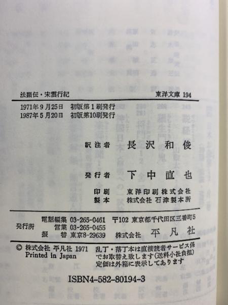 法顕伝・宋雲行紀 (東洋文庫 (194)) 平凡社 法顕