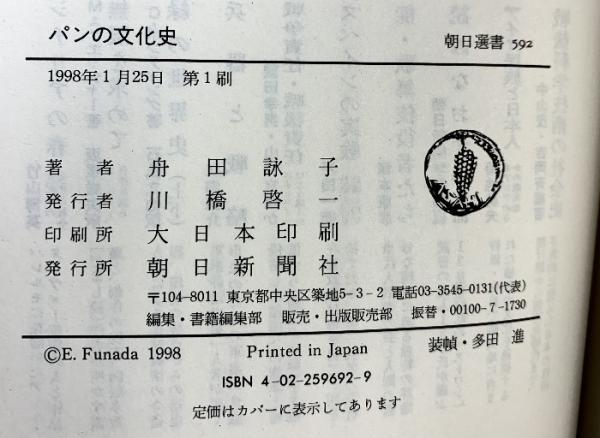 パンの文化史 (朝日選書 592) 朝日新聞出版 舟田 詠子