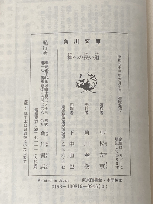 ※イタミ有 神への長い道 (1978年) (角川文庫) 角川書店 小松 左京