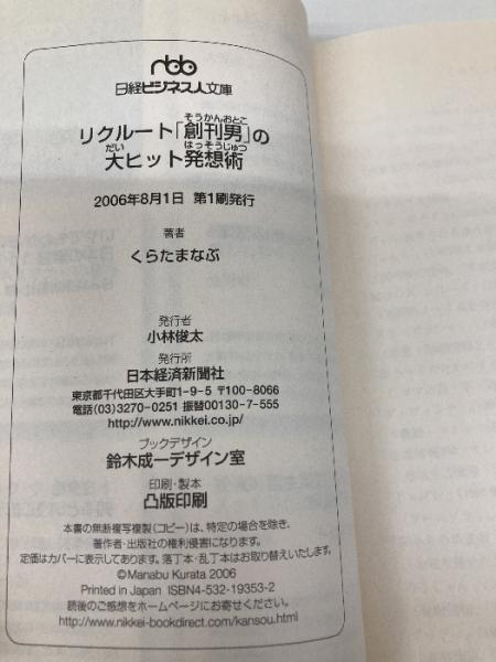 リクル-ト「創刊男」の大ヒット発想術 (日経ビジネス人文庫 ブルー く 4-1) 日本経済新聞出版 くらた まなぶ